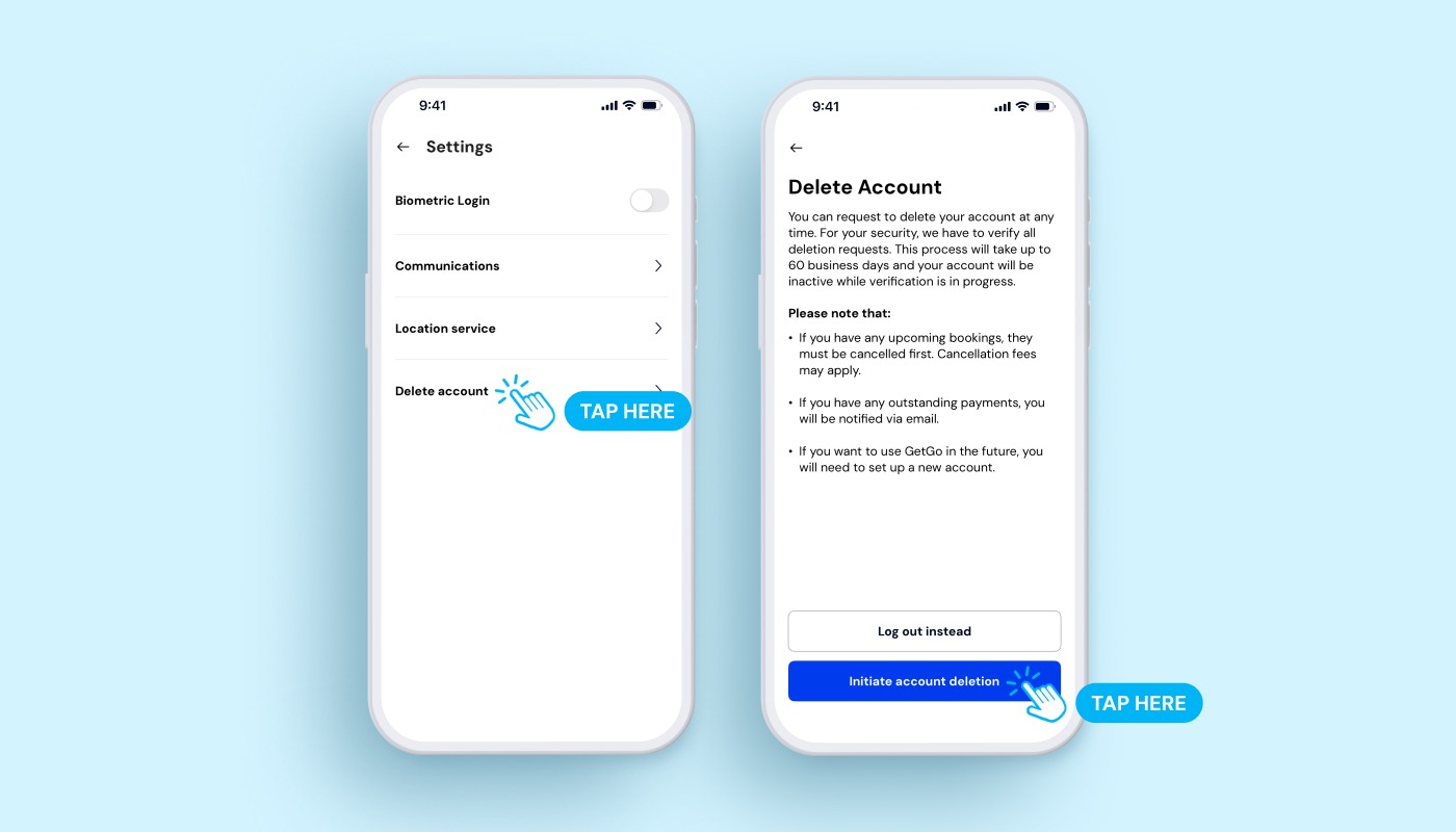 - If you wish to use GetGo again in the future, you will need to set up a new account.