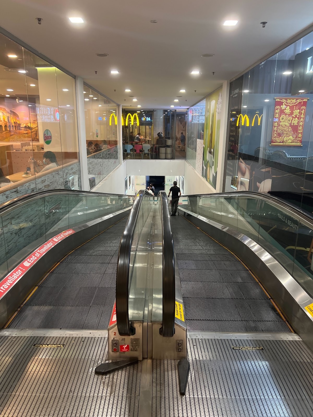 1. From the main entrance, head towards the supermarket, and take the nearest travelator down.