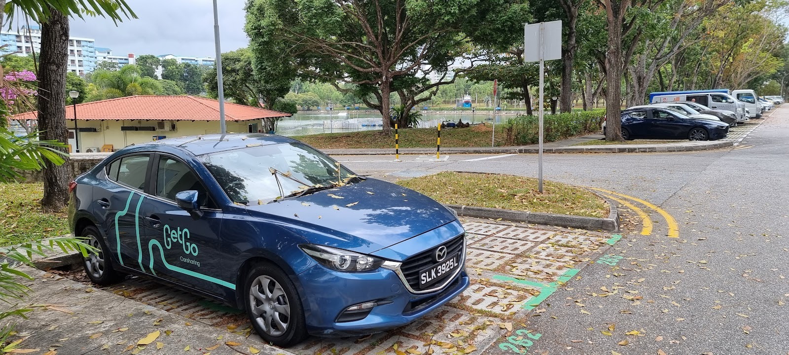 2. The GetGo car should be parked beside the rubbish disposal area, with the fishing area at the back.