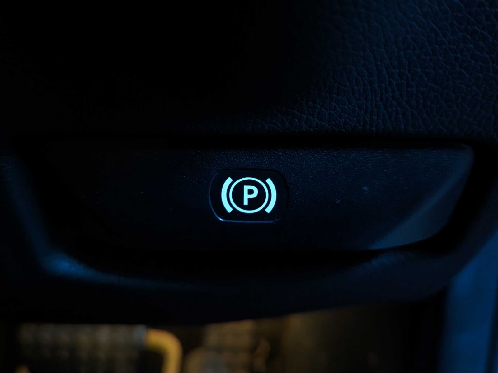 - To release the foot brake, locate and pull the lever to the bottom right of the steering wheel, as shown in the image below.