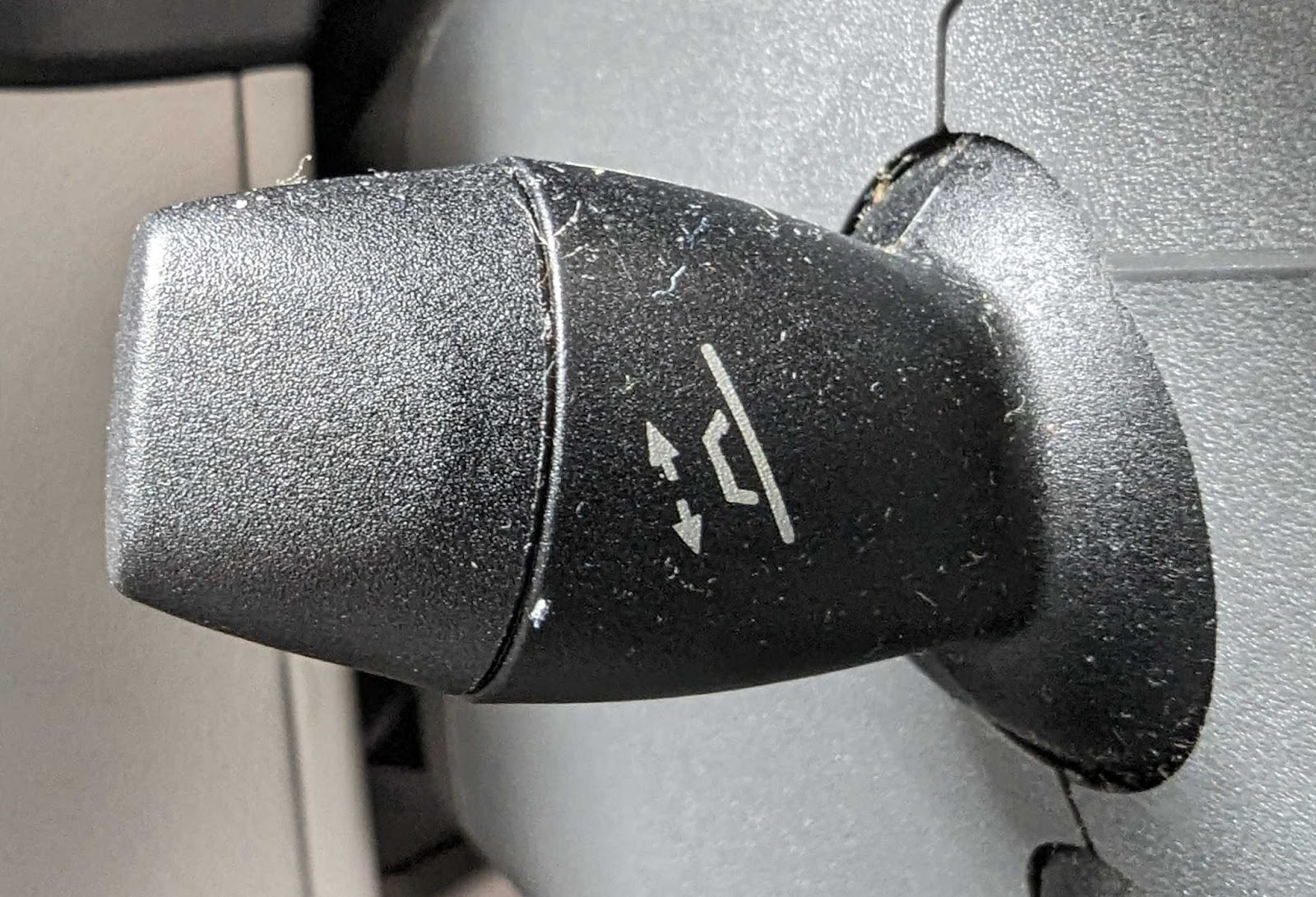 This lever can be found behind the left side of the steering wheel, as shown in the image below.