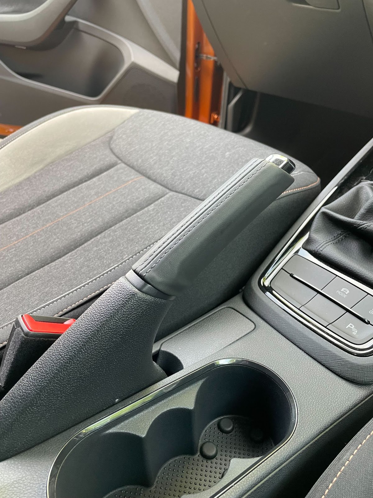 - Release the handbrake and the brake pedal as shown in the image below to start driving.