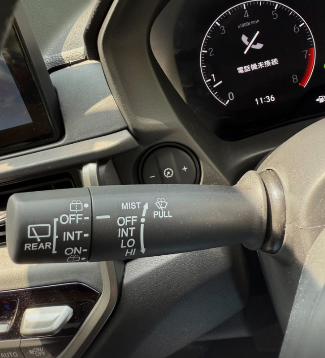 The wiper lever can be found on the left side of the steering wheel as shown in the image below.