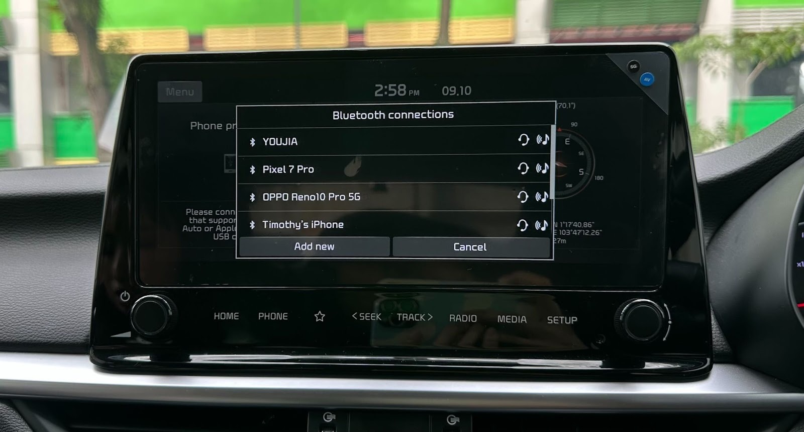 - To pair your device with the audio system, select your phone model/name as shown on the infotainment screen.