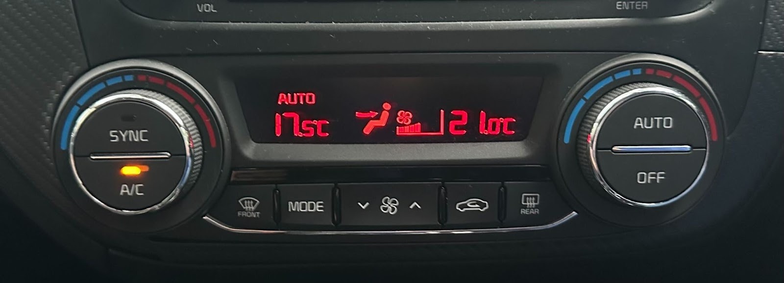 - Locate the aircon control panel on the dashboard as shown in the image below.