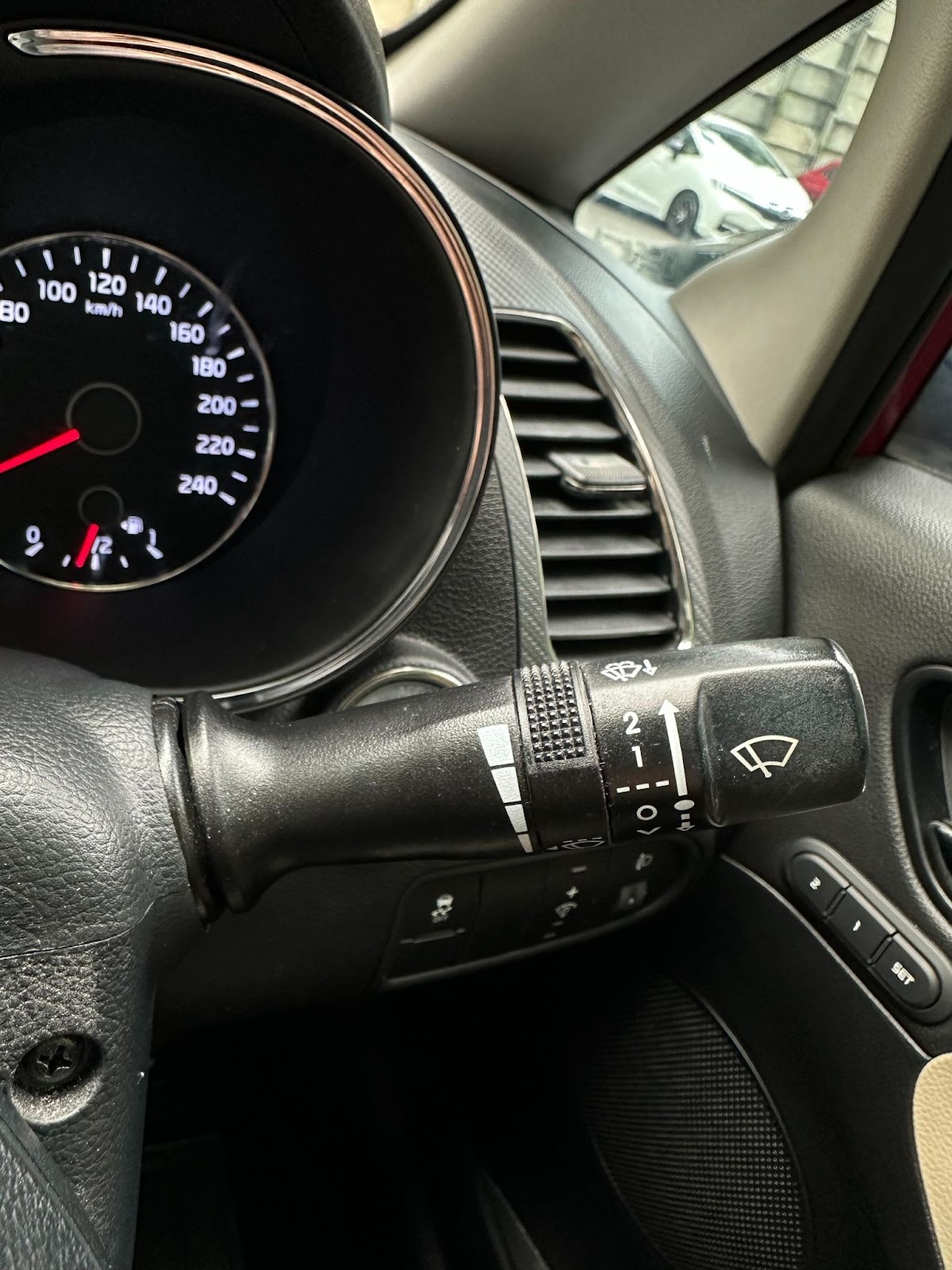 Locate the wiper lever on the right side of the steering wheel, as shown in the photo below.